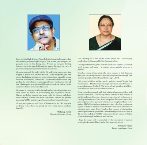 Editor & Moderator, Gems this exquisite anthology -GEMS, we represent the very essence of the best