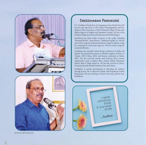 P.L. Sreedharan Parokode is a bi- lingual poet from Kerala State. He