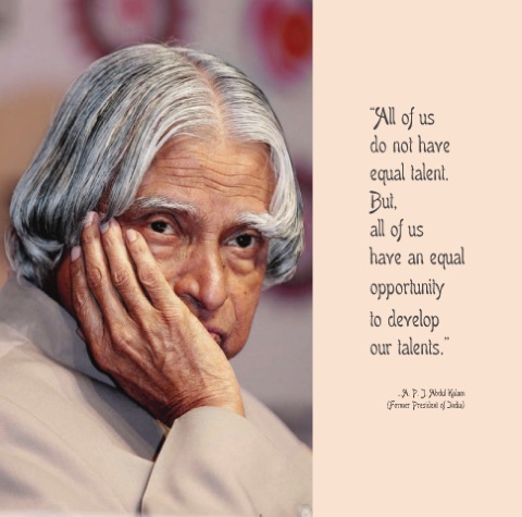 “All of us do not have equal talent. But, all of us have an equal opportunity to develop our talents." ...A. P. J. Abdul Kalam (Former President of India) 6