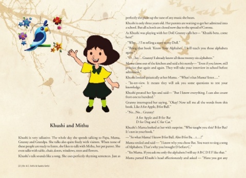 Mama came out of the kitchen and said a bit sternly— "Even if you know, still Mama coaxed Khushi — "Tell your Papa, Khushi! Sing your Alphabet songs." Khushi was almost on the verge of tears. Coming closer to Mithu she