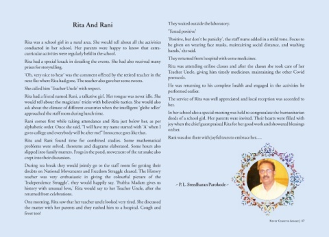 approached the staff room during lunch time. In her school also a special meeting was held to congratulate the humanitarian