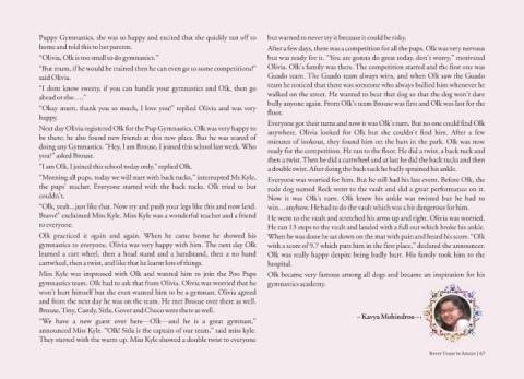 Bravo!” exclaimed Miss Kyle. Miss Kyle was a wonderful teacher and a friend He went to the vault and stretched his arms up and tight. Olivia was worried.