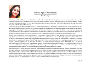 a story; Rabindranath Tagore paying tribute to Walt Whitman, once said," Whitman is the highest name…Whitman gives me pictures- pictures!" Tagore's statement speaks about