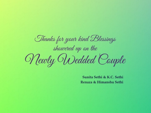Thanks for your kind Blessings showered up on the Newly Wedded Couple Sunita Sethi & K.C. Sethi Renaza & Himanshu Sethi