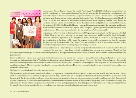 is yet to come. Among the many awards, the notable Poetic Galaxy Award 2018 by the Literati Cosmos Society for A) What makes you to be one among 25 Wonderful Women of Virtue: