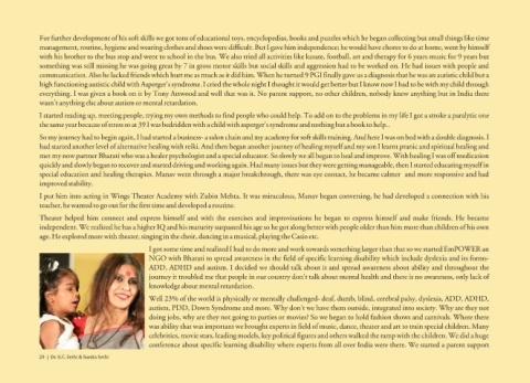 special education and healing therapies. Manav went through a major breakthrough, there was eye contact, he became calmer and more responsive and had