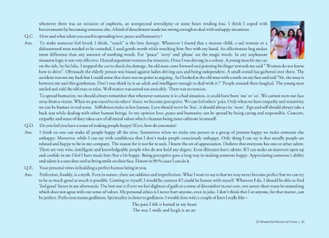 Q.A. What makes you to be one among 25 wonderful women of virtue ? on the side, by his bike. I stopped the car to check the damage. An old man came forward and pointing his finger towards me said “ Women do not know