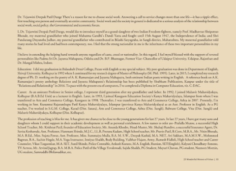 I, Dr. Tejaswini Deepak Patil Dange, would like to introduce myself as a grand-daughter of two Indian Freedom-fighters, namely Prof. Madhavrao Shripatrao