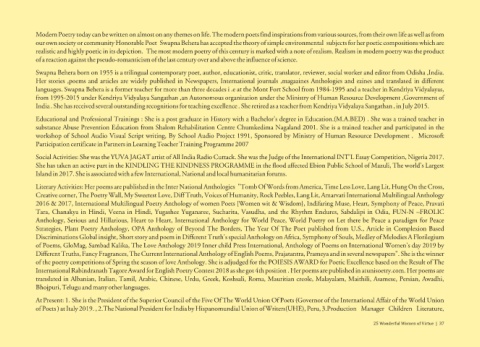 Swapna Behera Social Activities: She was the YUVA JAGAT artist of All India Radio Cuttack. She was the Judge of the International INT'L Essay Competition, Nigeria 2017.