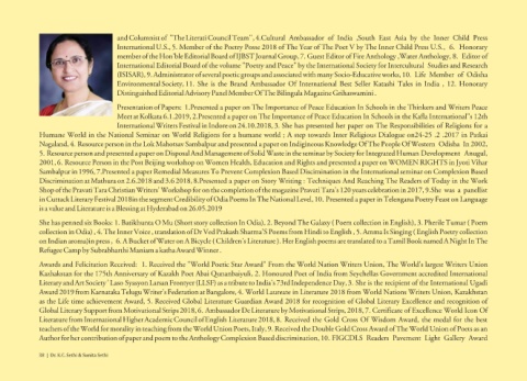 and Columnist of "The Literati Council Team'', 4. Cultural Ambassador of India ,South East Asia by the Inner Child Press 2019, for prestigious Achiever of Global Literature, For Glory and Honour, For Uplifting literary generations, For being Top