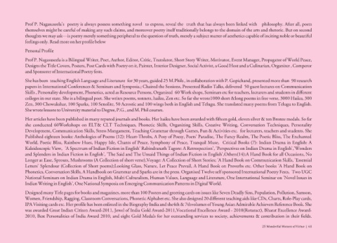 Prof P. Nagasuseela is a Bilingual Writer, Poet, Author, Editor, Critic, Translator, Short Story Writer, Motivator, Event Manager, Propagator of World Peace,