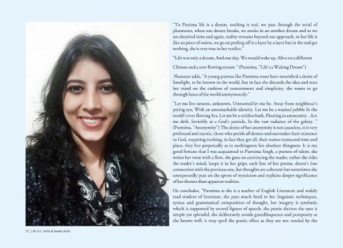 Shanazar adds, "A young poetess like Purnima must have nourished a desire of in whatever she does. Who also introduced her to great Hindi stalwarts like
