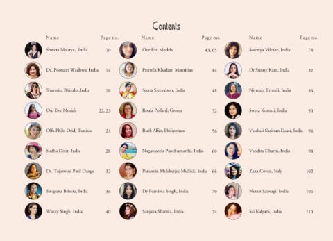 Shweta Maurya, India 10 Our Eve Models 43, 65 Soumya Vilekar, India 78 Actions are my faith , and how many verbs to cite: washing, preparing, swimming, writing, sewing,