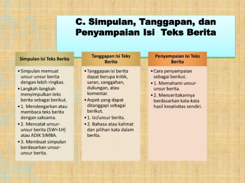 •Simpulan memuat •Tanggapan isi berita •Cara penyampaian