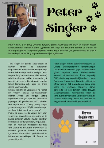 adlı kitabı hayvan hakları konusunda çok Bölümü’nün başına getirildiği andan bu yana