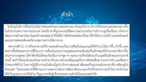 ศตวรรษที่ 21 การที่จะสามารถใช้งานคอมพิวเตอร์ในงานที่สนับสนุนมนุษย์ให้ท างานได้มากขึ้น เร็วขึ้น และ