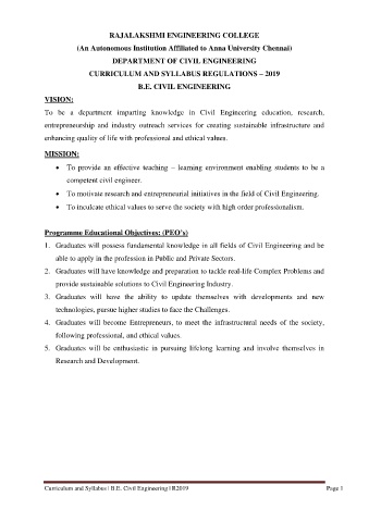 Curriculum and Syllabus | B.E. Civil Engineering | R2019 Page 1