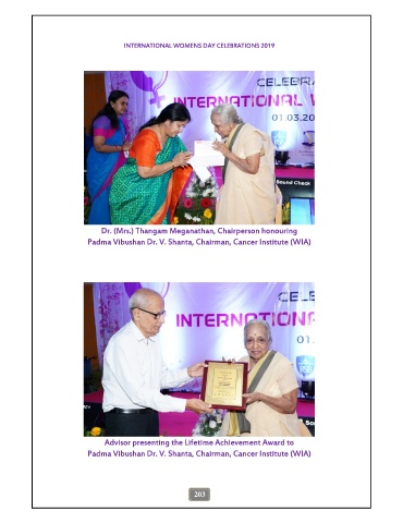Padma Vibushan Dr. V. Shanta, Chairadma Vibushan Dr. V. Shanta, Chairmanman, Cancer Institute (WIA), Cancer Institute (WIA)