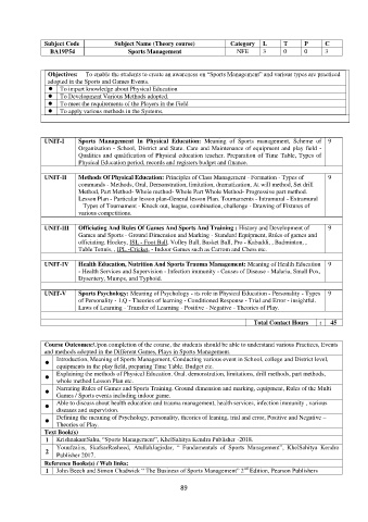 Objectives: To enable the students to create an awareness on “Sports Management” and various types are practiced