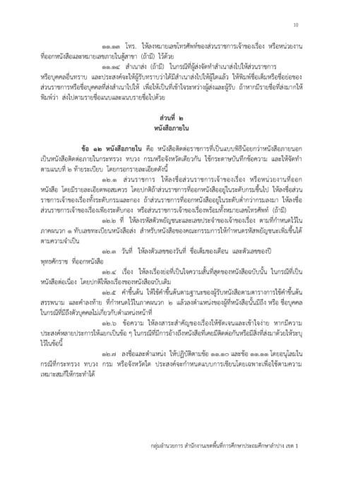 ข้อ ๑๒ หนังสือภายใน คือ หนังสือติดต่อราชการที่เป็นแบบพิธีน้อยกว่าหนังสือภายนอก