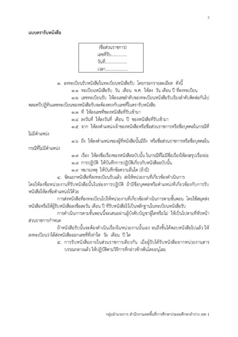 โดยให้ลงซื่อหน่วยงานที่รับหนังสือนั้นในซ่องการปฏิบัติ ล้ามีซื่อบุคคลหรือตำแหน่งที่เกี่ยวข้องกับการรับ