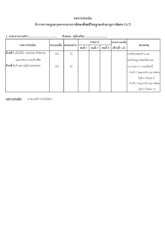 รายการประเมิน คะแนนเต็ม คะแนนผาน หมายเหตุ