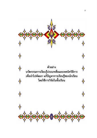 9 ตัวอย่าง ู้ นวัตกรรมการเรียนรประเภทสื่อและเทคนิควิธีการ เพื่อน าไปพัฒนา แก้ปัญหาการเรียนรู้ของนักเรียน โดยใช้การวิจัยในชั้นเรียน