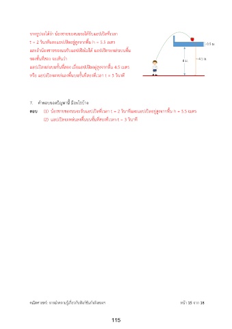 ตอบ (1) น้องชายของนนจะรับแอปเปิลที่เวลา t = 2 วินาทีและแอปเปิลอยู่สูงจากพื้น h = 5.5 เมตร