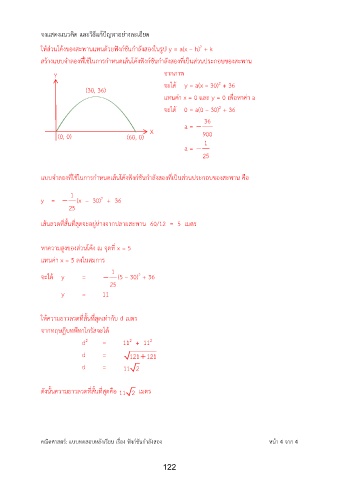 ให้ส่วนโค้งของสะพานแทนด้วยฟังก์ชันก าลังสองในรูป y = a(x – h) + k