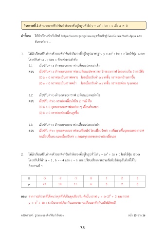 1. ให้นักเรียนปรับค่าคงตัวของฟงก์ชันก าลังสองที่อยู่ในรูปมาตรฐาน y = ax + bx + c โดยใช้ปุ่ม slider