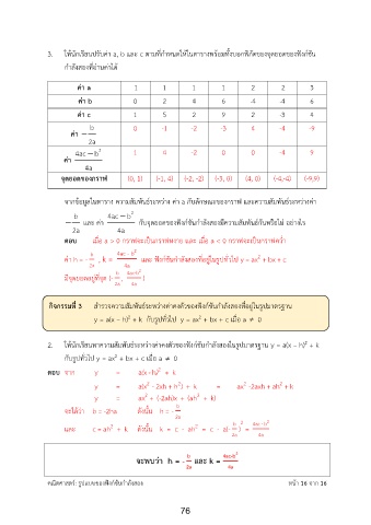 2. ให้นักเรียนหาความสัมพันธ์ระหว่างค่าคงตัวของฟังก์ชันก าลังสองในรูปมาตรฐาน y = a(x – h) + k