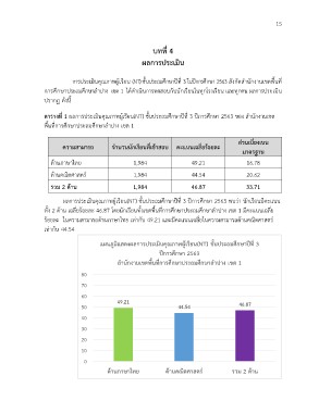 ร้อยละ ในความสามารถดา้ นภาษาไทย เท่ากับ 49.21 และมคี ะแนนเฉลีย่ ในความสามารถดา้ นคณิตศาสตร์