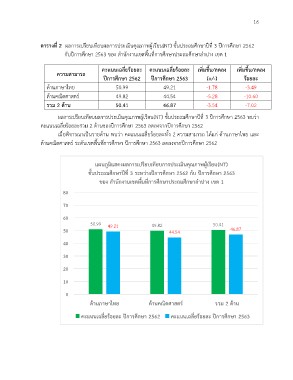 คะแนนเฉลย่ี ร้อยละรวม 2 ด้านของปกี ารศกึ ษา 2563 ลดลงจากปกี ารศกึ ษา 2562