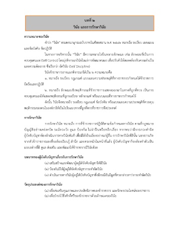 ค าว่า “วินัย” ตามพจนานุกรมฉบับราชบัณฑิตยสถาน พ.ศ. 2542 หมายถึง ระเบียบ แบบแผน