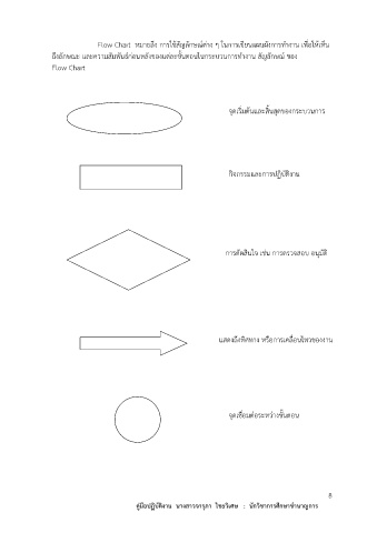 Flow Chart หมายถึง การใช้สัญลักษณ์ต่าง ๆ ในการเขียนแผนผังการท างาน เพื่อให้เห็น