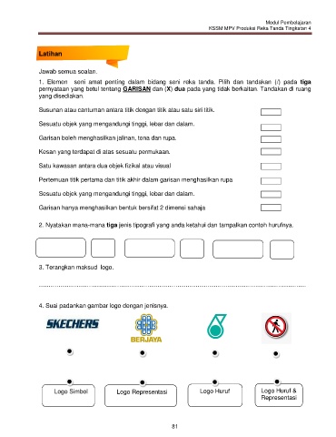 1. Elemen seni amat penting dalam bidang seni reka tanda. Pilih dan tandakan (/) pada tiga