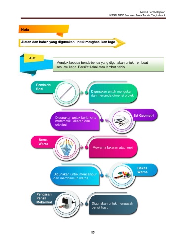 Alatan dan bahan yang digunakan untuk menghasilkan logo.
