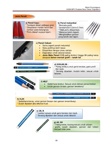 Jenis Mata Pensil EXB paling lembut hingga 9H-paling keras