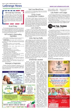 see our Brush Chipping Policy at www.lagrangetownshipohio. LaGrange. Doors open at 5:30 p.m. The main prize is $500. ees was called to order at 7:30 p.m. All officers were present