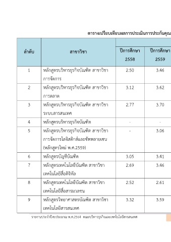 1 หลักสูตรบริหารธุรกิจบัณฑิต สาขาวิชา 2.50 3.46 3.29 3.12 3.69 -