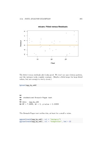and the variance looks roughly constant. (Maybe a little larger for large fitted