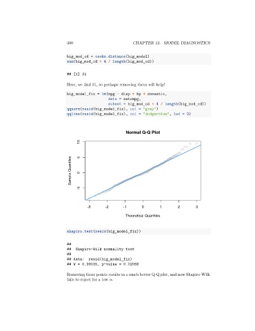 Removing these points results in a much better Q-Q plot, and now Shapiro-Wilk