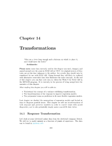 ways to diagnose possible issues. This chapter we will use transformations of