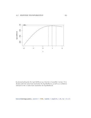 boxcox(savings_model, plotit = TRUE, lambda = seq(0.5, 1.5, by = 0.1))
