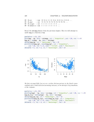 Recall the autompg dataset from the previous chapter. Here we will attempt to