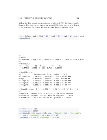 ## lm(formula = mpg ~ mph + I(mph^2) + I(mph^3) + I(mph^4), data = econ)
