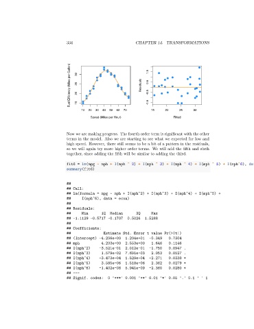 ## lm(formula = mpg ~ mph + I(mph^2) + I(mph^3) + I(mph^4) + I(mph^5) +