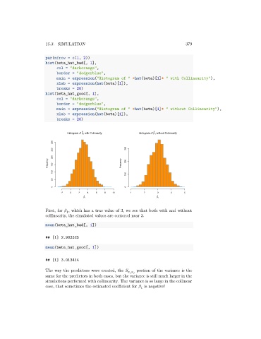 Histogram of β 1 with Collinearity Histogram of β 1 without Collinearity