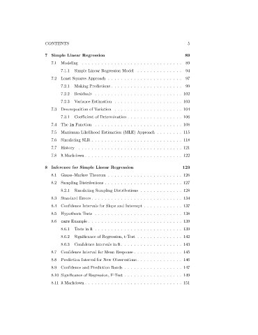 7.1.1 Simple Linear Regression Model . . . . . . . . . . . . . . 94