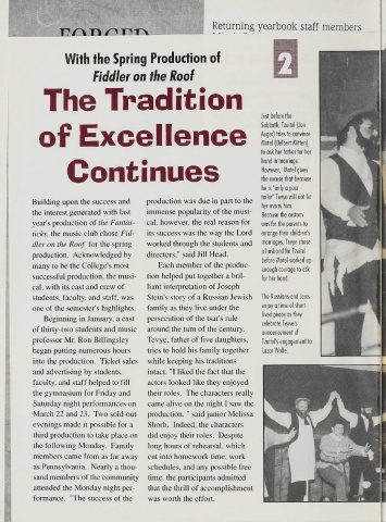 professor Mr. Ron Billingsley Tevye, father of five daughters, Tzeitel's engagement to